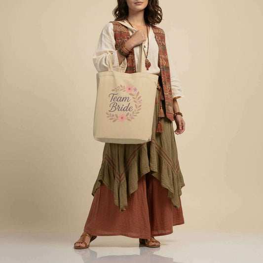 Beige Tote Bag “Team Bride” – Pastel Floral – Boho Chic and Hen Party Collection