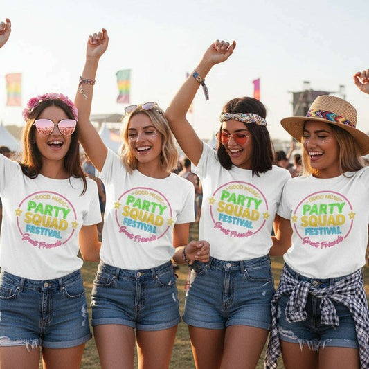 Regular price From €19,99 EURRegular priceUnit price / perSale price From €19,99 EUR“Party Squad Festival” T-shirt – Good Music. Great Friends. – Black or White