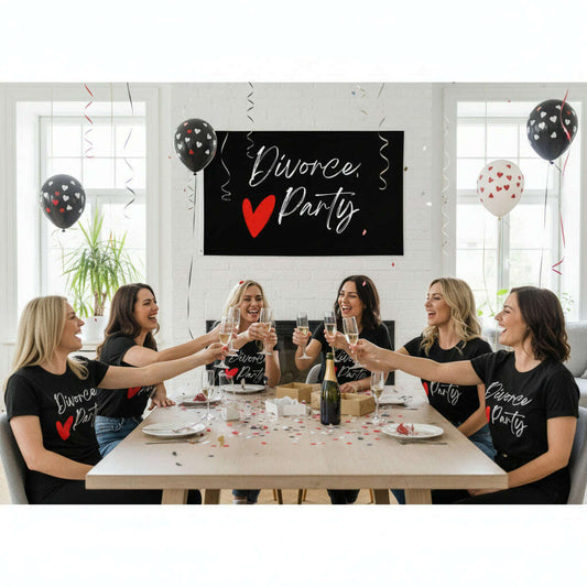 Bandera de fiesta de divorcio: decoración de pared negra con mensaje.