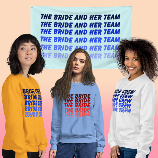 Bandera de despedida de soltera de la novia y su equipo — Banner de boda del equipo de la novia — Decoraciones para despedidas de soltera