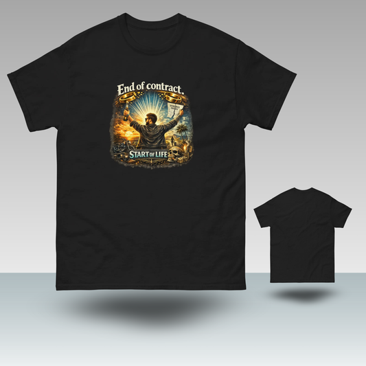 Camiseta negra para hombre de la fiesta del divorcio: Fin del contrato, comienzo de la vida